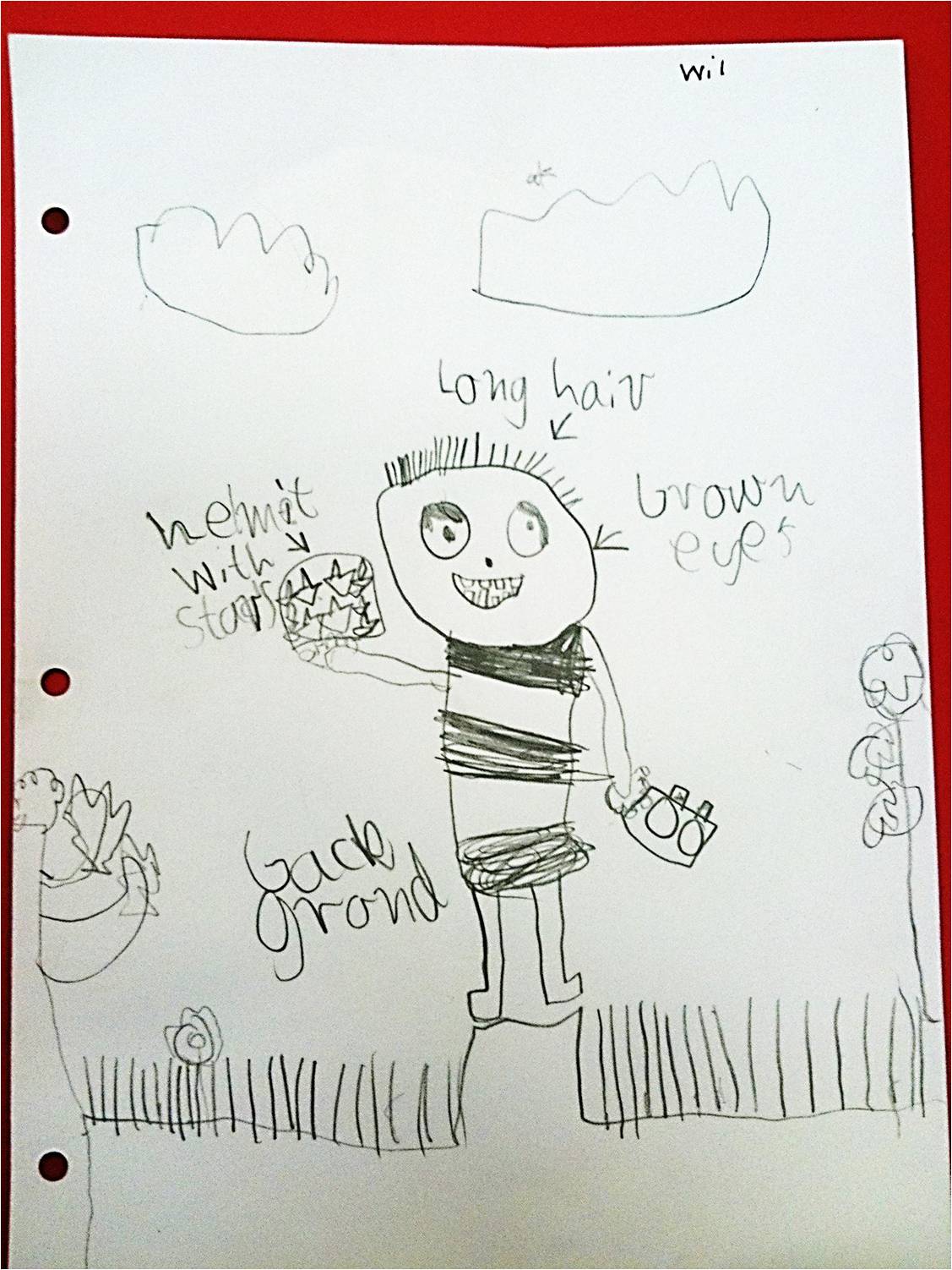 My character is pretty, lovely, helpful, caring, shares things, listens, and thinks before she does things. She lives in the sky in the castle. She lives with her mum, dad and her sister. She hangs out with her best friend Grayson. She wears sparkly clothes and she likes wearing her hair up. Eliza